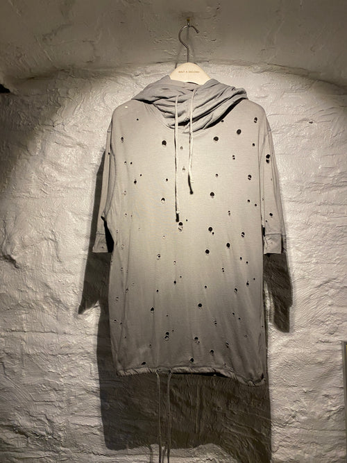 Ann Demeulemeester Gray Oversized Cut-Out Distressed Short-Sleeve Hoodie