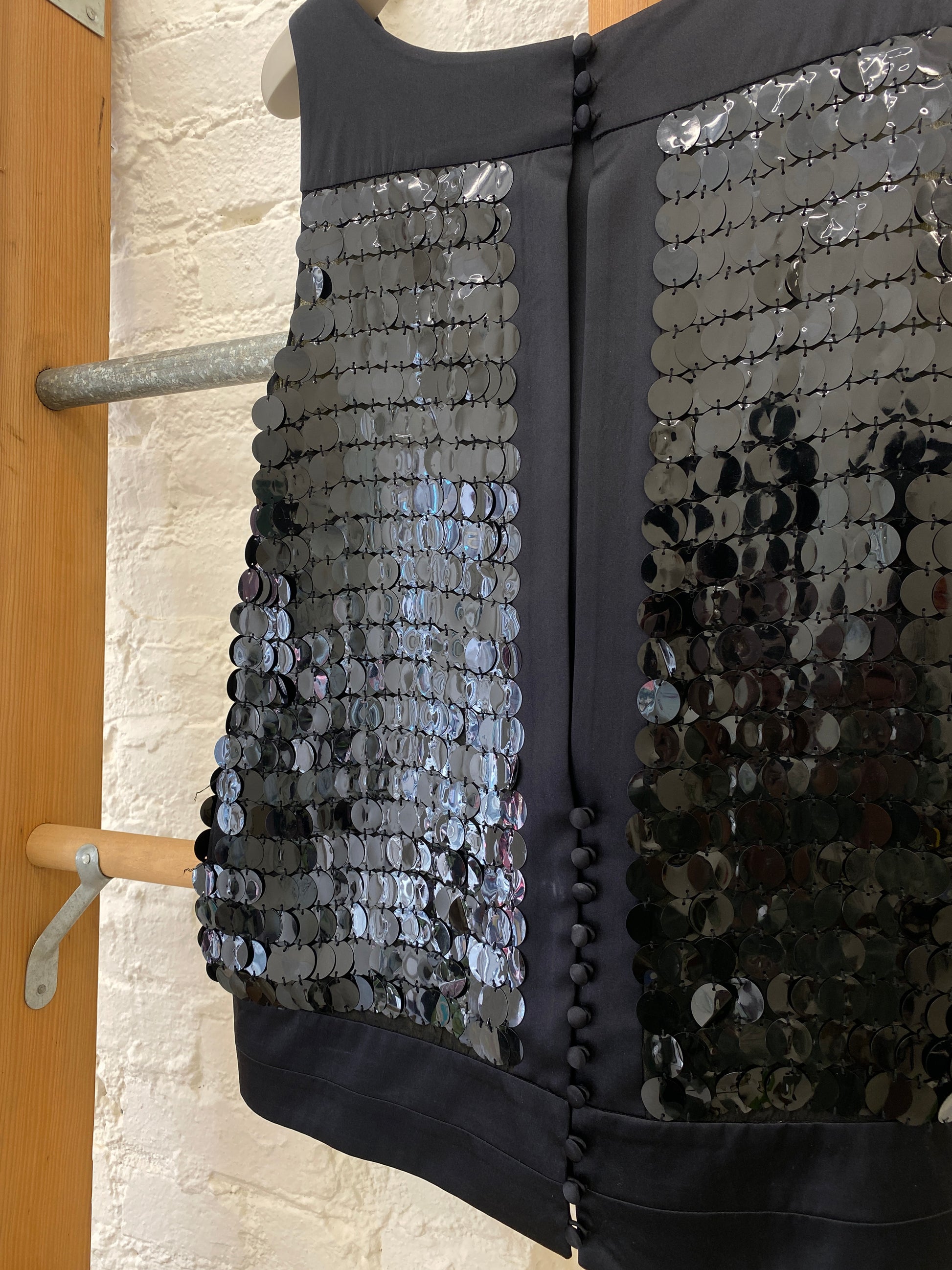 Silk covered buttons and open back in Black